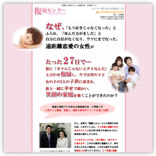 探偵業者の中には、復縁を頼めるところも見られます。なんとしても以前のパートナーと復縁したいなら、信用のおける探偵のお世話になるのもアリだと思います。