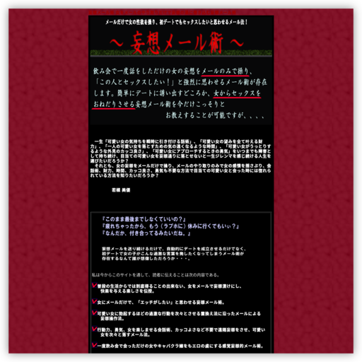 真剣に恋愛したい人も見られますが、一日限りの相手をあさっているだけの人も少なくないのが出会い系サイト(PCMAXなど)の利点であり、欠点でもあります。あなた自身に適したサイトを選定することが肝要です。